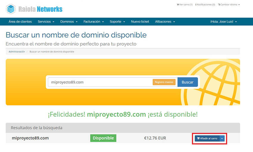 Lo primero que tienes que hacer es entrar en el buscador de dominios libres de Raiola Networks.
